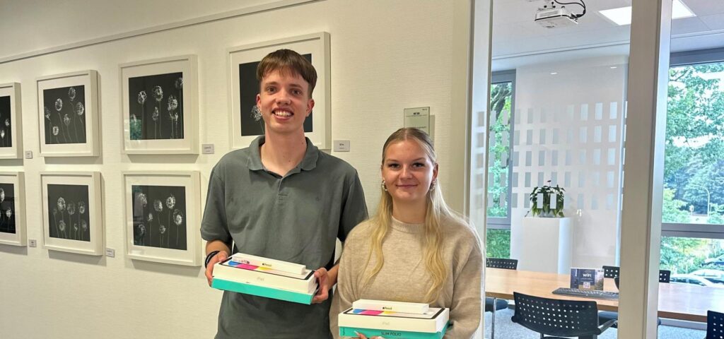 Passend zum (Berufs-)Schulstart haben Mia und Niklas letzte Woche ihre iPads erhalten. Somit sind auch unsere neusten Azubis sofort digital unterwegs – mit allem, was man für Schule, Projekte & Co. braucht. Ob Lernplattform, Projektarbeit oder einfach schnelle Notizen: das iPad macht den Ausbildungsalltag einfacher und flexibler. Uns ist wichtig, dass Lernen nicht nur funktioniert, sondern auch Spaß macht. Mit der passenden Technik fördern wir Selbstständigkeit, digitale Skills und machen unsere Nachwuchstalente fit für morgen. Denn klar ist: Wir investieren nicht nur in Geräte – wir investieren in die Zukunft unserer Azubis.