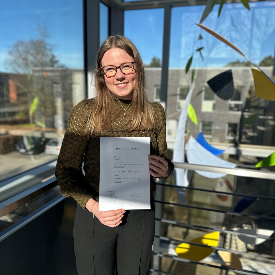 Was für ein großartiger Erfolg: Lina hat die Steuerberaterprüfung bestanden! Wir freuen uns riesig mit ihr und gratulieren von Herzen zu diesem Meilenstein. Mit Fleiß, Ausdauer und fachlicher Stärke hat sie diese Herausforderung gemeistert – eine wirklich starke Leistung! Liebe Lina, wir sind stolz auf dich und glücklich, dich auch weiterhin in unserem Team zu haben. Wir wünschen dir für deinen beruflichen Weg als Steuerberaterin nur das Beste!